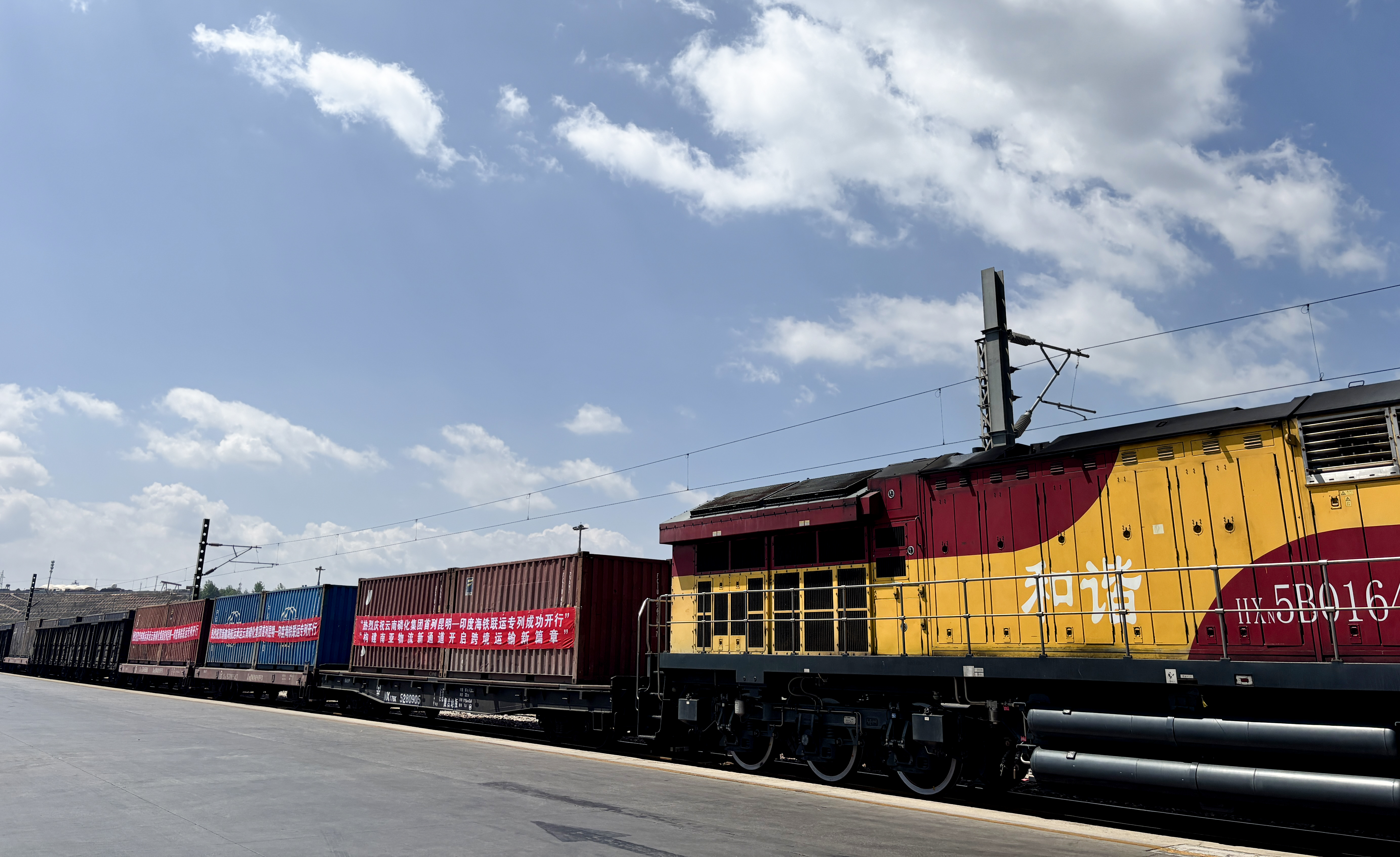 4月21日,一列滿載“云天化”牌飼鈣產品的集裝箱專列猶如鋼鐵駝隊,自昆明鐵路王家營西站鳴笛啟程,奔赴北部灣欽州港。這批貨物將通過中遠海運巨輪跨越湛藍海域,最終抵達印度欽奈港,在海上絲綢之路劃出嶄新的貿易弧線。